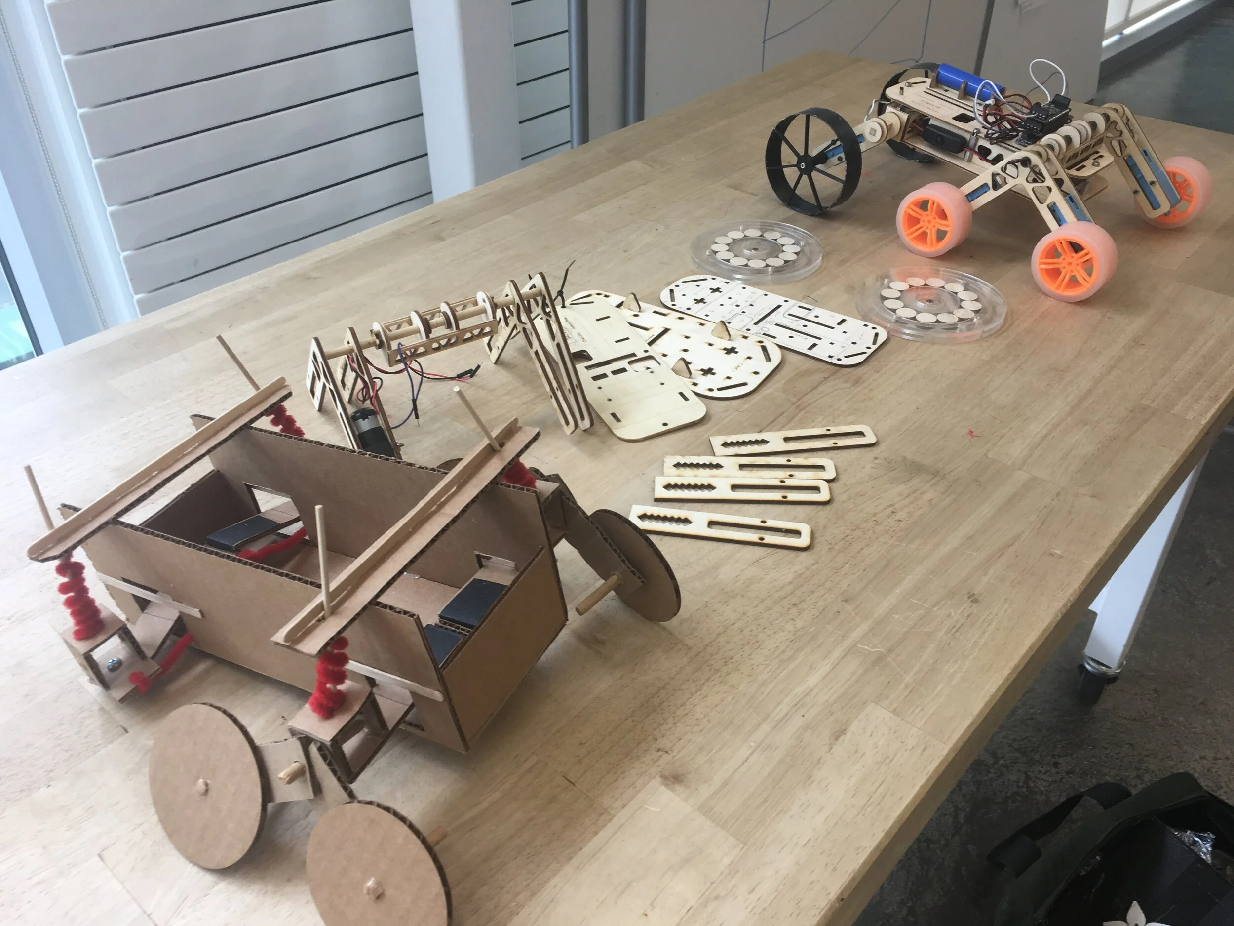 Using laser cut plywood, initial components were designed with adjustable lengths and mounting options. These pieces allowed real world testing with the ability to make quick changes without having to make new parts.